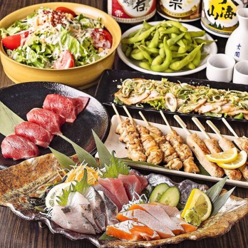 【歓送迎会にもおすすめ】串焼きや肉寿司などのお肉から、お造り盛り合わせなどの海鮮、サラダやカルパッチョなど多彩なメニューを楽しめるコースは、各種ご宴会にぴったりです♪